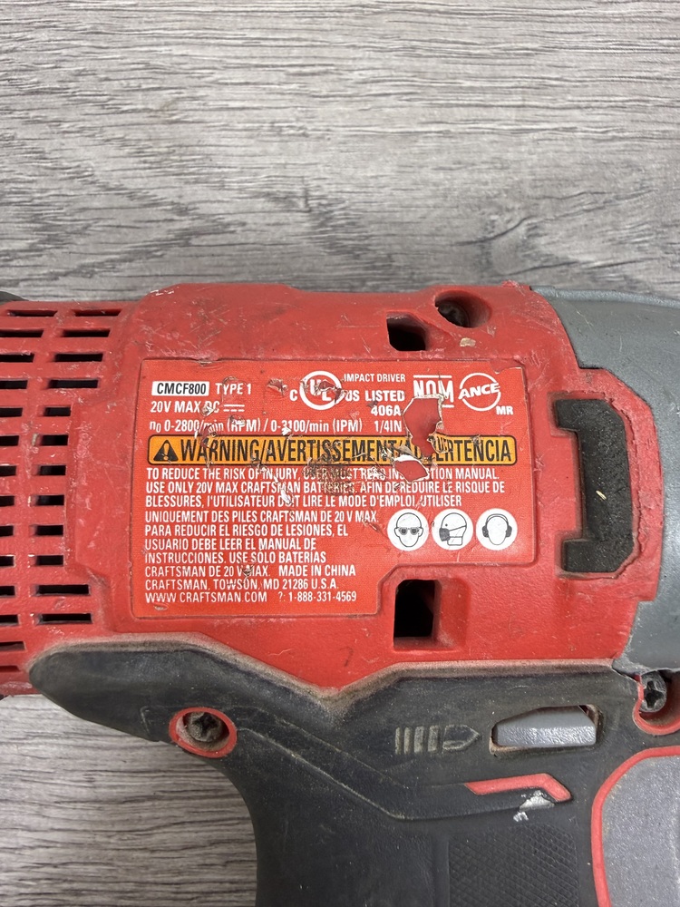 The Craftsman CMCF800 20V is a high-performance cordless impact driver. Its features include a 20V MAX battery, providing power for driving large fasteners. It comes with a 1/4 quick-connect chuck for easy bit changes. Equipped with variable speed trigger and integrated LED light, it ensures precision and visibility in various working conditions. Crafted for endurance, this tool boasts a lightweight and compact design for user comfort and convenience.